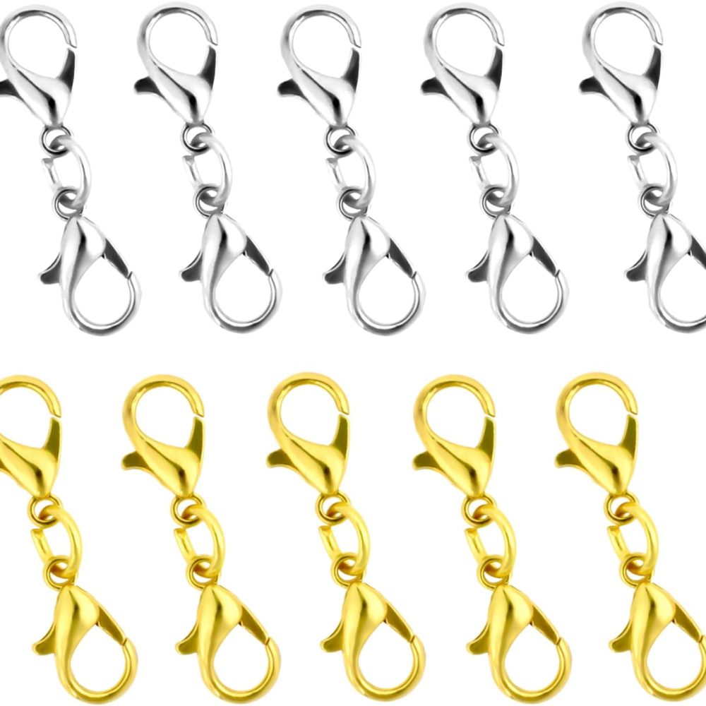 Product on saleDouble Lobster Clasp, 10 Pieces Necklace Chain Extenders Gold Silver Bracelet Connectors Jewelry Findings Stainless Steel Keychain Clasp Lobster Claw Clasps for Jewelry DIY Crafts Making SuppliesOriginal price was: €3.99.€2.99Current price is: €2.99. -